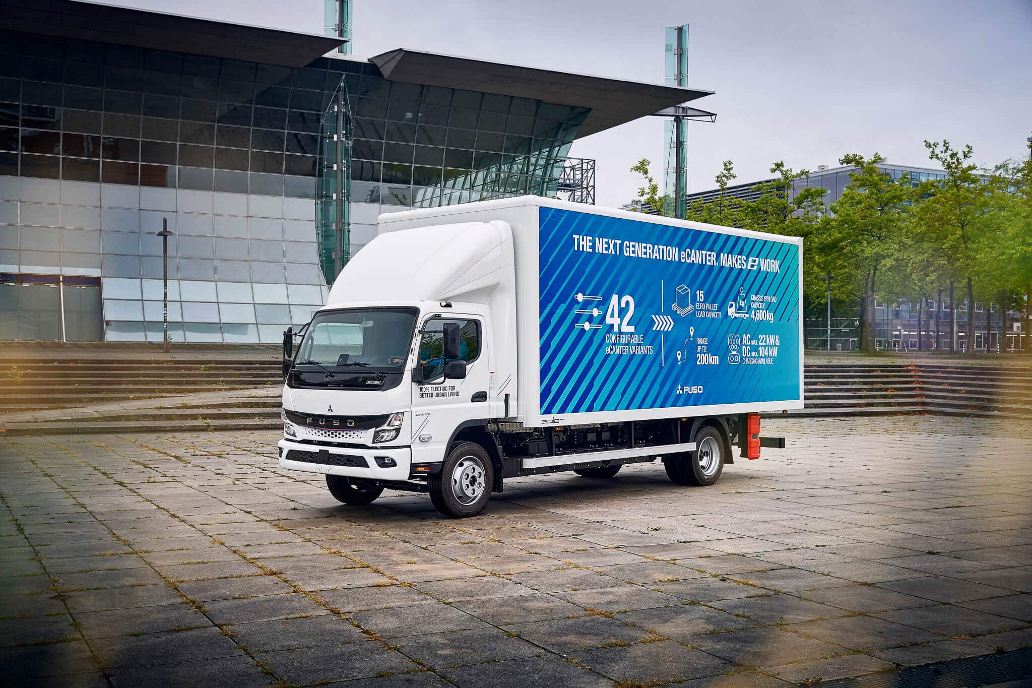 FUSO equips the Next Generation eCanter 6.0 t ex works with the narrow cab variant.